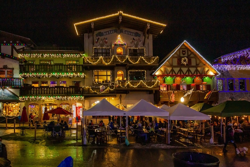 Leavenworth’s Village of Lights Festival is a Bavarian fairy tale come to life for the holidays! This cute little mountain town gets decked out with over half a million lights—talk about a glow-up. 🎄✨